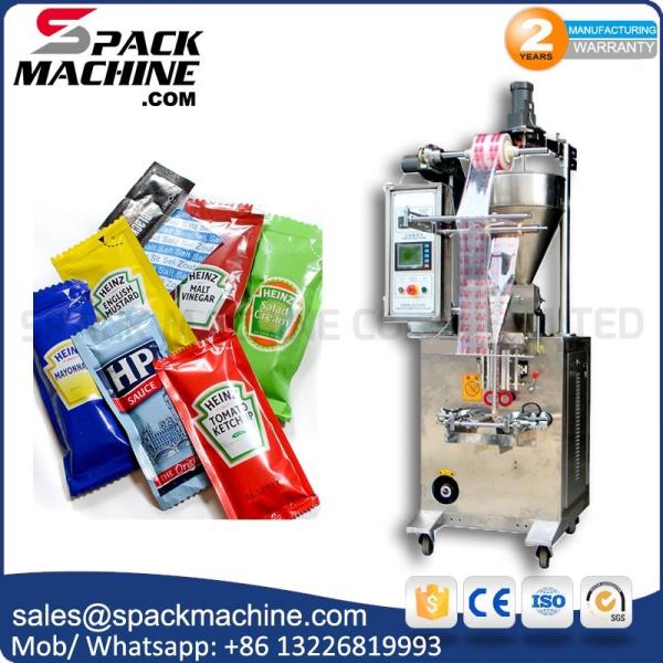 This pouch packing machine is mainly used for ketchup/tomato sauce, chili sauce,peanut butter , hotpot condiment, salad